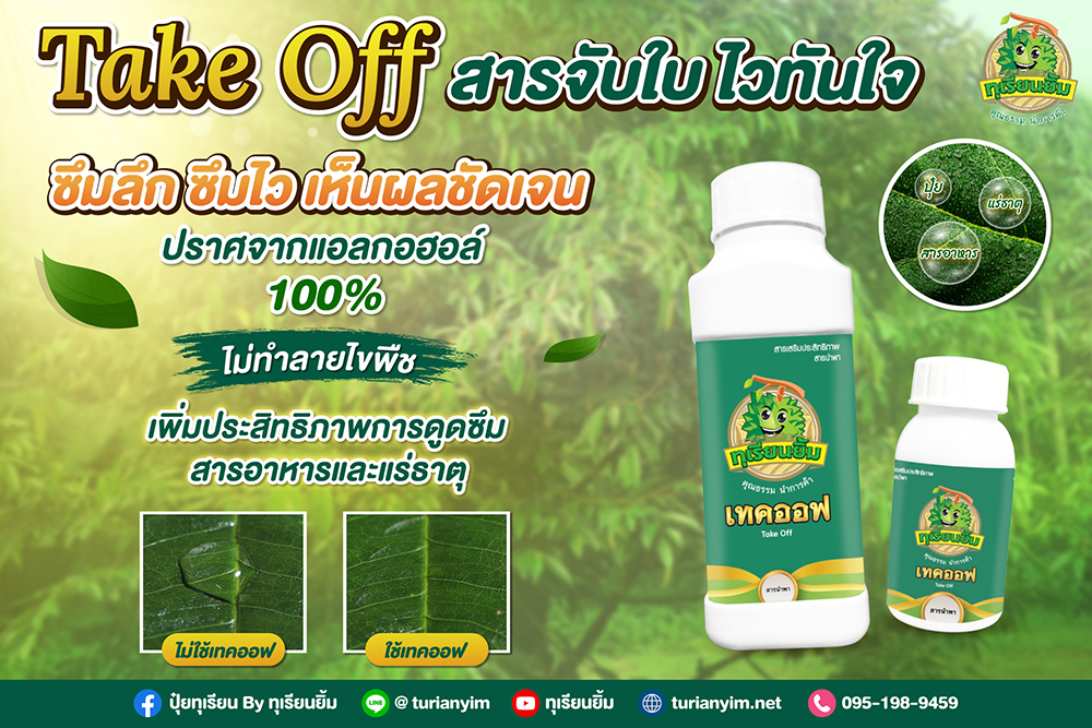 ใช้เทคออฟ ปริมาณเพียง 5 ซีซี ต่อน้ำ 200 ลิตร ไม่ว่าจะเป็น ปุ๋ยหมัก ปุ๋ยเกร็ด ปุ๋ยน้ำ ฮอร์โมนพืช สารกำจัดแมลง